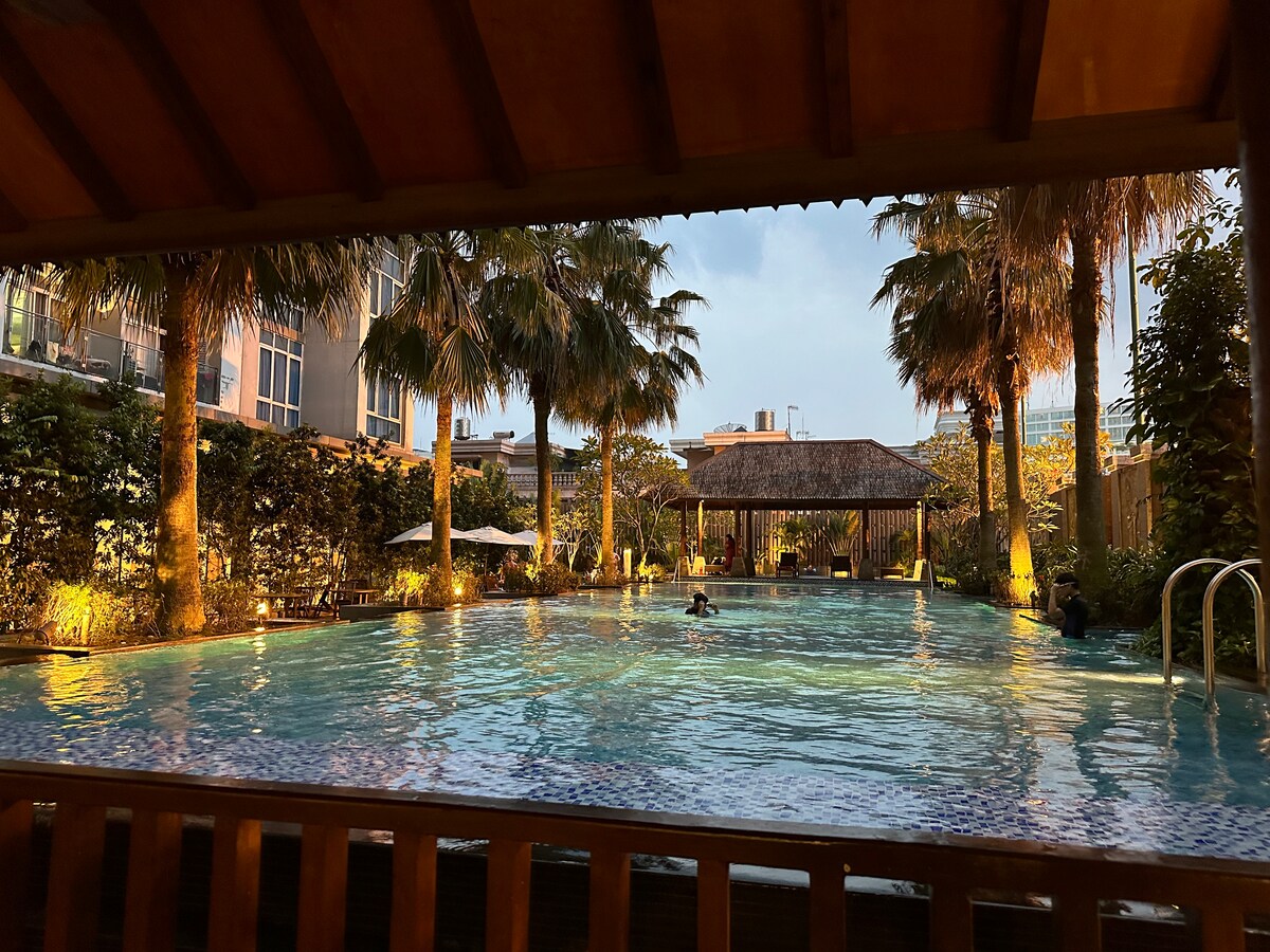 Насолоджуйтеся стильним враженням у цьому помешканні, розташованому в центрі міста. З найкращим видом і затишним інтер 'єром це буде незабутнє перебування. Він дуже зручний і має доступ до одного з найбільших торгових центрів у Медані. ☆ Самостійне прибуття☆