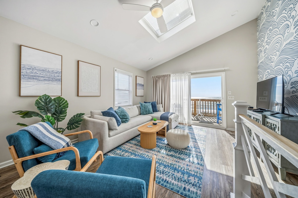 Надаються білизна та побутові засоби. Собаки дозволені. Ласкаво просимо до The Ocean Breeze – красиво відремонтованого таунхаусу на березі океану з 3 спальнями, 3,5 ванними кімнатами та захоплюючим видом на Атлантичний океан. Засинайте під звуки хвиль і прокидайтеся під час приголомшливих сходів сонця. Насолоджуйтеся трьома приватними балконами зі зручними сидіннями на відкритому повітрі, які ідеально підходять для відпочинку з родиною та друзями, насолоджуючись океанським бризом. Будьте уважні: дельфіни часто зустрічаються біля берега, тож кожне перебування тут буде незабутнім.