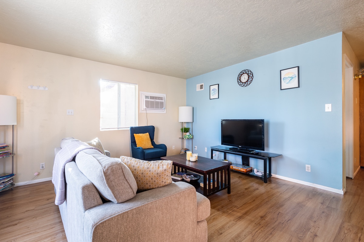 Нещодавно відремонтований гостьовий будинок розташований у Північній долині Альбукерке. Центральне розташування має швидкий доступ до місцевих пам 'яток, таких як Старе місто, Індійський культурний центр Пуебло, центр міста, парк Balloon Fiesta та багато іншого! 30+ пивоварень, виноробні та винокурні в межах 5 миль! Окремий вхід і під 'їзд. 2 спальні з двоспальними ліжками та розкладним диваном забезпечують спальне місце для 6 осіб. На міні-кухні є холодильник, посудомийна машина, мікрохвильова піч, плита, електрична сковорідка та Keurig. Критий патіо з сидінням на відкритому повітрі