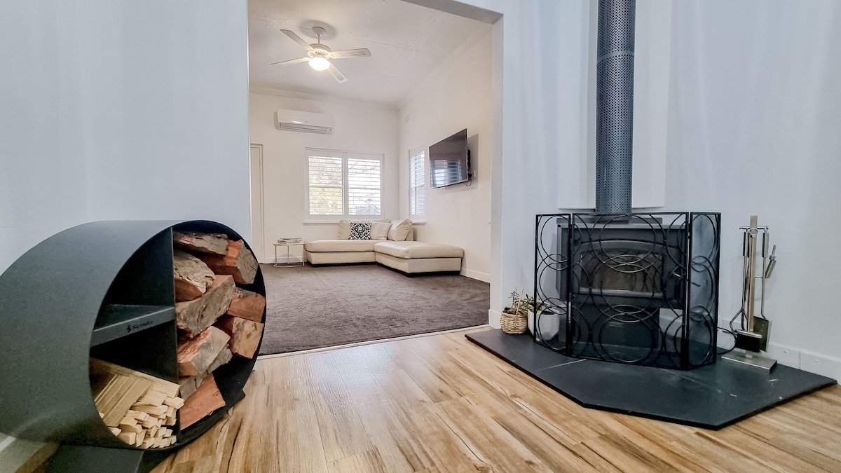 🏡 Дуже центральне розташування – 1 хвилина пішки до головної вулиці Можна перебувати з🐶 домашніми тваринами 🌼 Великий захищений двір із барбекю та великий гараж ☕️ Кавоварка та розташування поблизу місцевих кафе 🔥 Камін і піч із плицями Це чудове помешкання з 3 спальнями розташоване в центрі Вагги. Помешкання було нещодавно відремонтовано й стильно мебльоване. Ми надаємо розкішну постільну білизну та рушники, безкоштовний високошвидкісний Wi-Fi, два смарт-телевізори + Netflix, безпечний гараж і великий задній двір. У 3 спальнях є ліжко розміру «king size», ліжко розміру «queen size» та двоспальне ліжко.