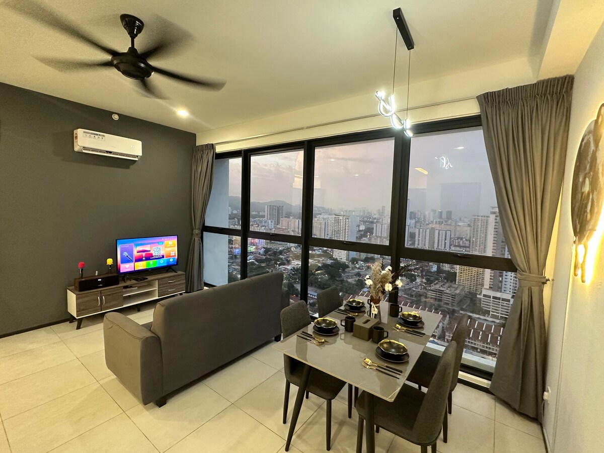 Ласкаво просимо до нашої квартири з 3 спальнями в Urban Suites Penang! Наша квартира розташована в Jelutong, який є центральним розташуванням, недалеко від району Джорджтауна. З квартири відкривається чудовий вид на вежу Комтар, міський пейзаж і частковий вид на море, який обов 'язково залишить вас завороженими. Наша квартира ідеально підходить для сімей або груп друзів, які шукають комфортне та зручне перебування в Пенангу.