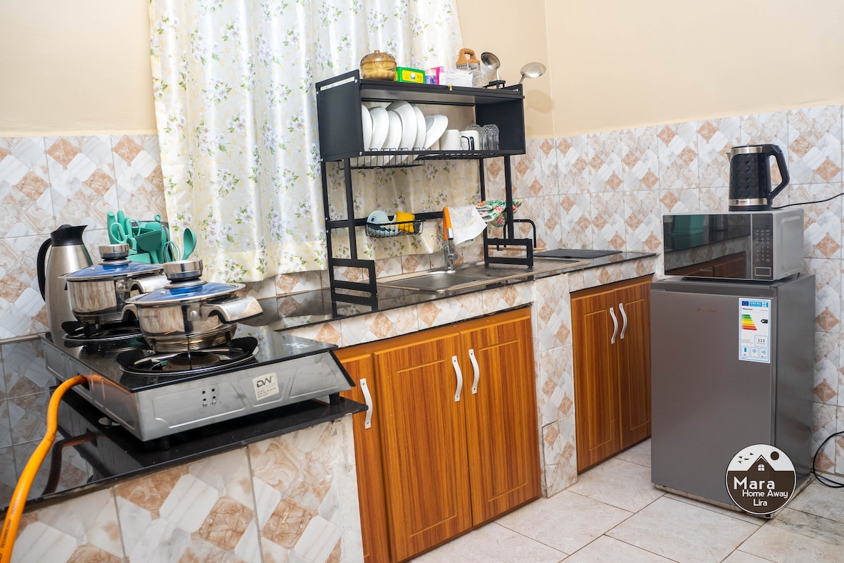 Усамітнене повністю мебльоване помешкання з двома спальнями, призначене для гостей із різноманітним походженням. У помешканні також є WI-FI для роботи та телевізор для дозвілля та розваг. Помешкання розташоване в Одокоміті, в 10 хвилинах від центру міста Ліра та вздовж Кампала-роуд з сусіднім тренажерним залом, супермаркетами та місцями для відпочинку.