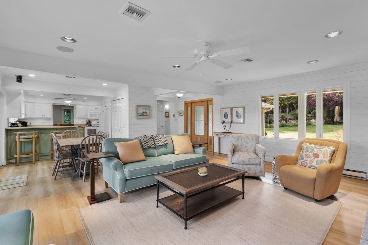 ☆ Спокійний зруб на березі водойми з неймовірними краєвидами на 2 акри. Включено 3 байдарки та 3 дошки для веслування! ☆ Високошвидкісний Wi-Fi і робоче місце Фільм ☆ на свіжому повітрі, караоке, корнхол тощо! ☆ Приватний причал, 20 хвилин від популярного пляжу Вір-Мар! Місце для багаття, ґанок, ігрова кімната! ☆ Продуктовий магазин всього в 5 хвилинах ходьби ☆ Смарт-телевізори в кожній кімнаті ☆ 3 спальні з двоспальним ліжком king-size ☆ YMCA для дітей ☆ Чудові спостереження білоголових орланів ☆ Риболовля та лов крабів Парковка для☆ човнів Спостереження ☆ за зірками! ☆ Зовнішні засоби безпеки – для вашої безпеки та конфіденційності