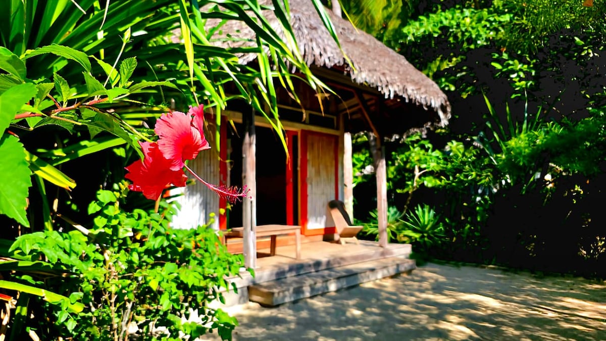 Два чарівні бунгало прямо біля води на дикому пляжі, оточеному кокосовими пальмами, на острові Нусі-Бе. Неперевершені краєвиди на океан, незабутні заходи сонця, тропічний сад, абсолютна тиша. Чудово підходить для 2 пар або сім’ї. Прямий вихід до моря, можливість прогулянок, наявність доглядача та хатньої робітниці. Шматочок раю, яким можна поділитися.