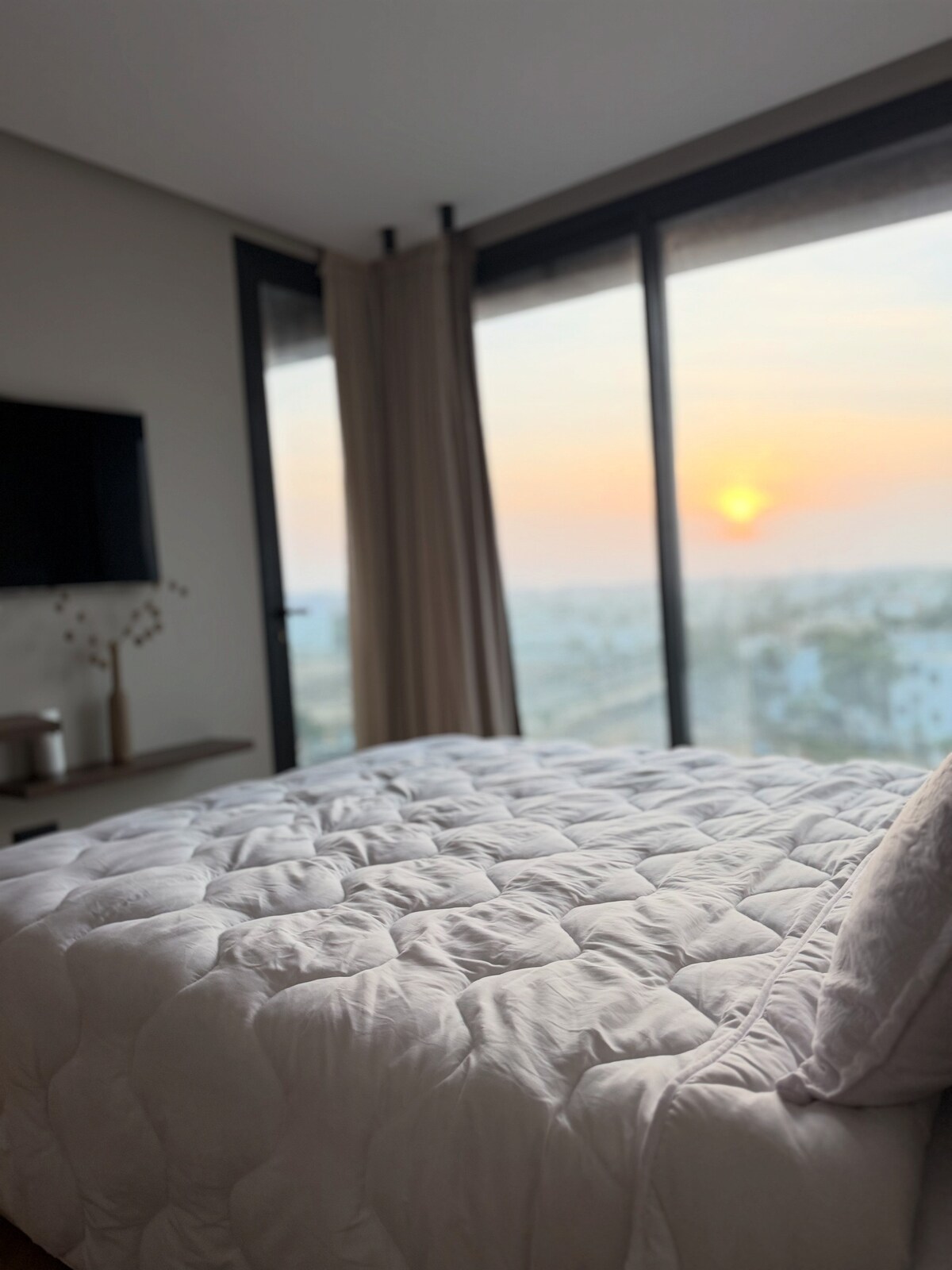 🌴 L’Horizon – Élégance & Sérénité à Nouaceur À deux pas de l’aéroport, ce studio moderne au sein d’une résidence haut standing avec piscine allie confort et raffinement. Profitez de la terrasse lumineuse avec vue sur les jardins, d’une literie premium et d’une cuisine équipée. Idéal pour escales, déplacements pros ou escapades cosy, chaque instant devient une expérience unique.