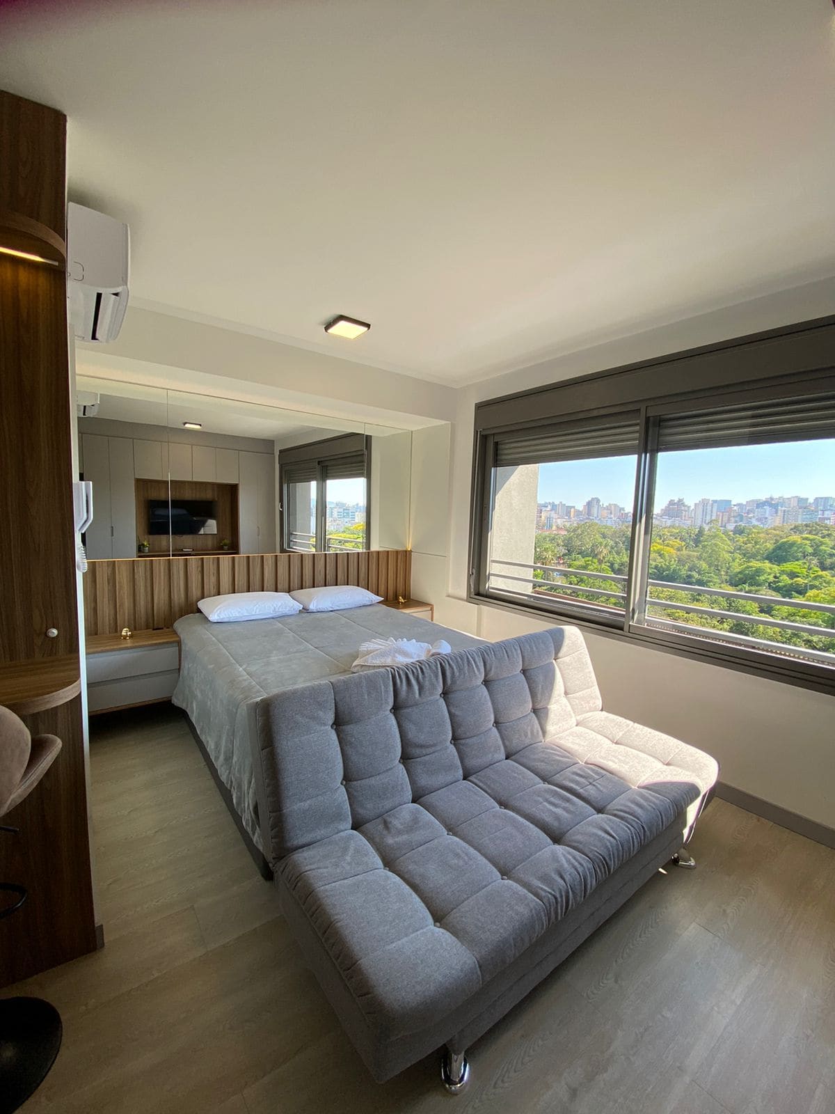 Добрий день! Будемо раді вітати вас, забронювавши цю студію, ви знайдете приємну та сучасну атмосферу в новій та добре розташованій будівлі, поруч із PUCRS та лікарнею PUC. У ньому є повноцінне ліжко, ванна та ковдри. У нас є один диван-ліжко, а також один матрац для розміщення сім’ї з дітьми. Електронний замок у квартирі для полегшення вашого прибуття. Безкоштовна парковка, приватне місце в приміщенні.