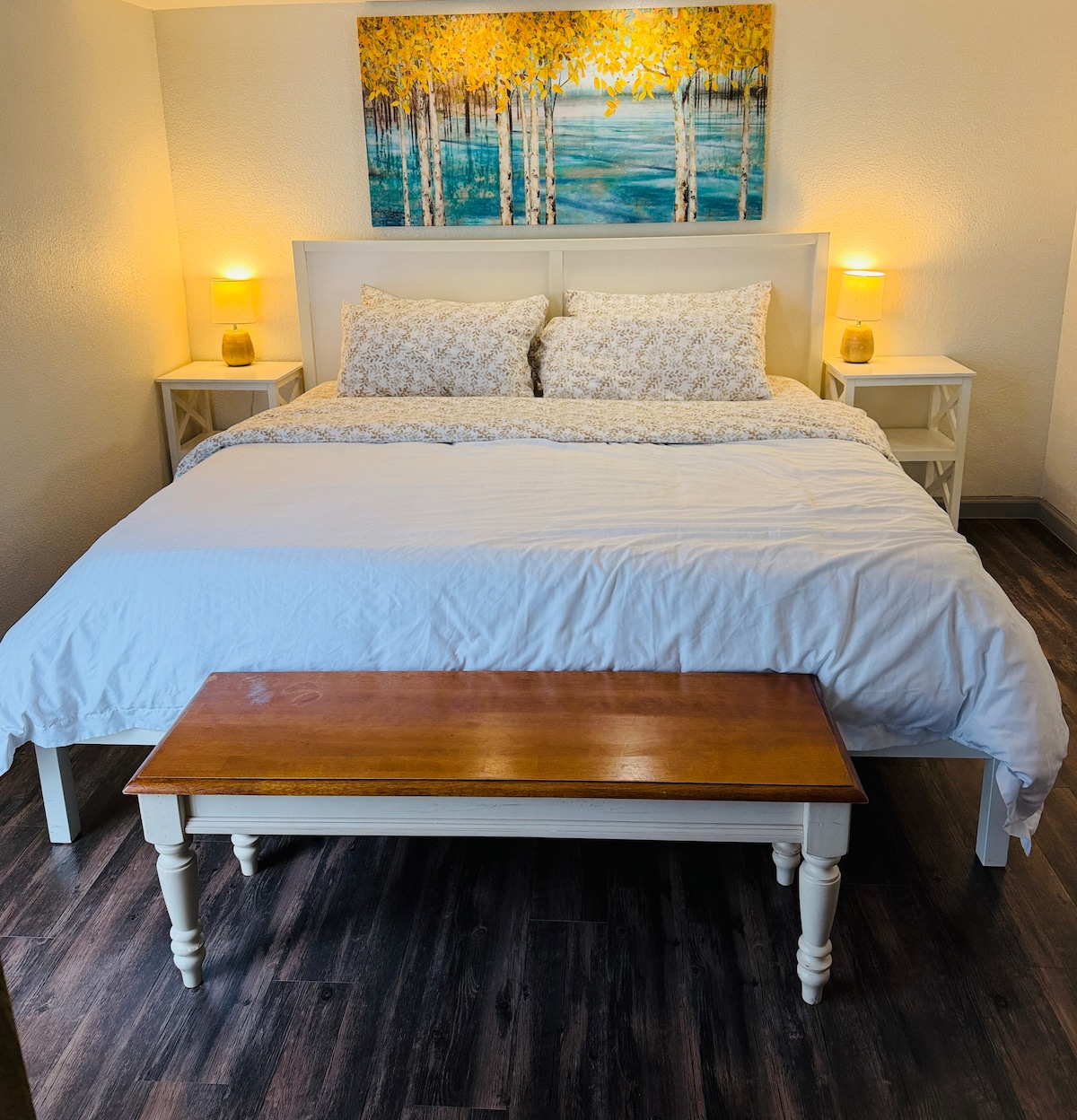 Ви не забудете про своє перебування в цьому сучасному помешканні з вишуканою кухнею, спальнею з окремою ванною кімнатою та великою кількістю природного світла. Вийдіть на приватний задній двір зі спальні або кухні, щоб насолодитися їжею в обідній зоні на відкритому повітрі або випити біля чаші для багаття. Після цього зайдіть у просторий готельний лаундж, схожий на чудовий номер, щоб дивитися Netflix на 75-дюймовому телевізорі. Пральня оснащена новою пральною машиною, сушильною машиною та раковиною високої потужності. Критий паркінг з легким доступом.