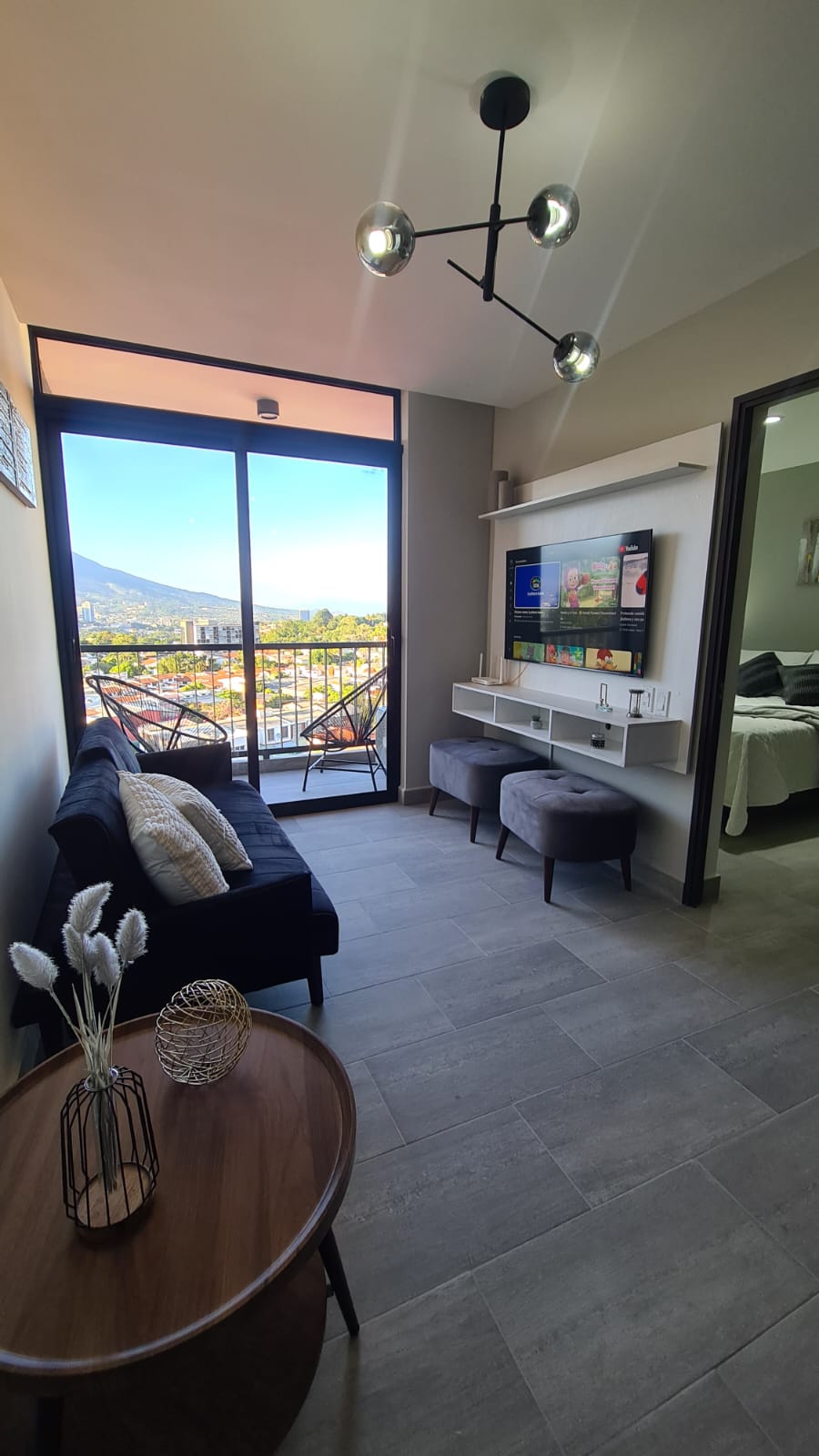 Сучасні, повністю обладнані апартаменти з панорамним видом на вулкан Сан-Сальвадор. Розташований на 9-му поверсі житлового комплексу в Санта-Теклі, він ідеально підходить для роботи, відпочинку та відпочинку. Навколо просторі зелені зони та зони для відпочинку, які допомагають збалансувати ваш день між роботою, сім 'єю, фізичними вправами та відпочинком. Зручно розташоване поруч із супермаркетами, ресторанами та різноманітними магазинами, з швидким доступом до основних доріг, що з 'єднуються з Сан-Сальвадором, Ла-Лібертадом та західним регіоном.
