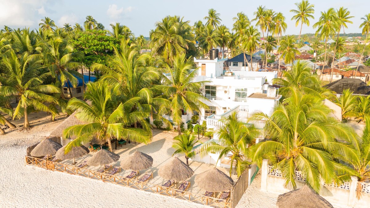 Відвідайте нас і отримайте незабутній краєвид на захід сонця на одному з найкращих пляжів Занзібару з наших просторих балконів, насолоджуючись морським бризом з Індійського океану. Під час перебування у нас ви зможете насолодитися облаштуванням готелю (поєднання традицій суахілі та суахілі), садом, привітним персоналом та кухнею суахілі. Просторий і бездоганний пляж із білим піском розташований всього в 5 хвилинах ходьби від готелю, де можна відпочити, поплавати, засмагати, поспілкуватися та насолодитися відпочинком на свіжому повітрі.