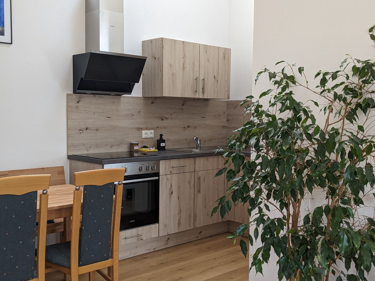 Ласкаво просимо до вашого приватного спа-центру на франконській природі поблизу Нюрнберга. Розкішне помешкання площею 100 кв. м ідеально підходить для пар, друзів і невеликих сімей, які шукають відпочинку. Насолоджуйтеся гідромасажною ванною на відкритому повітрі та фінською сауною на терасі з видом на замок, а також інфрачервоною сауною та каміном у приміщенні – все це виключно для вас. Окремий вхід, повна конфіденційність та екологічне опалення відходами деревини з нашої столярної майстерні.