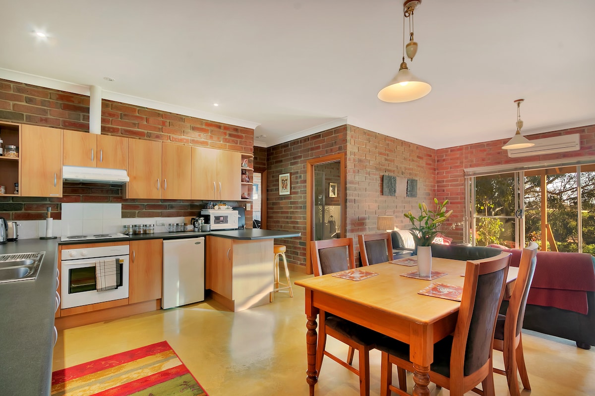 Це окреме гостьове крило розташоване на площі 80 акрів в центрі долини Баросса, оточене виноградниками та садами. Наш відпочинок поверне вас на природу... з виноградниками та прогулянками з чагарниками (у супроводі принаймні однієї з наших прикордонних коліс), дружніми гусями, вишуканим павичним павичом, курами, врятованими та дикими кенгуру, іноді коалою та безліччю птахів. Насолоджуйтеся краєвидами з веранд, сидіть біля вогнища (в прохолодні місяці) або відпочивайте в гамаку.