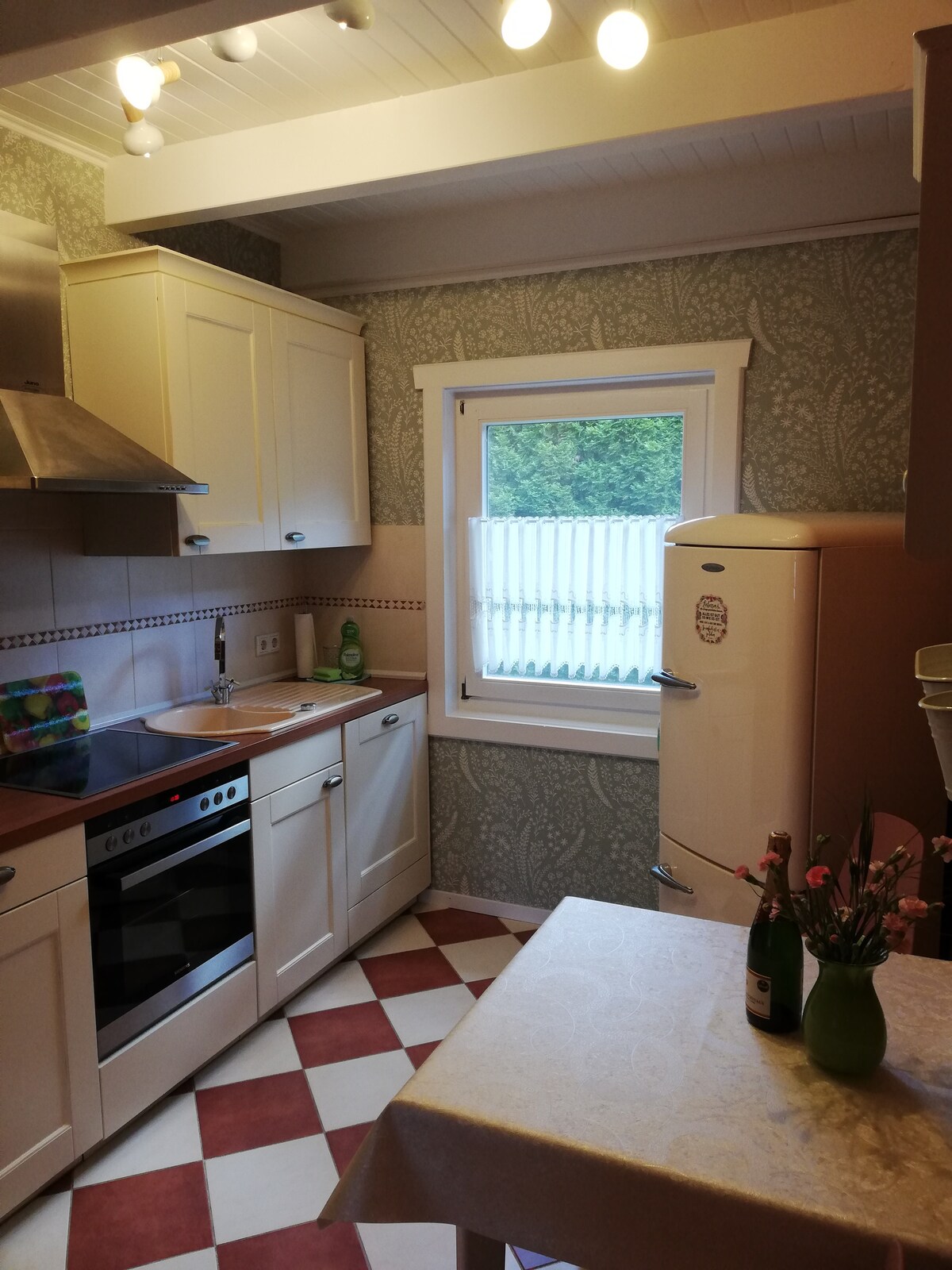 Ця комфортабельна квартира площею 108 кв. м на першому поверсі (без бар’єрів) розташована в чарівному селі на околиці міста, звідки легко дістатися до міста Фульда в стилі бароко та сусіднього регіону Рон. Окрім двох спалень і дитячої кімнати, у квартирі є дві ванні кімнати. Простора вітальня, обладнана 55-дюймовим смарт-телевізором, обідньою зоною відкритого планування та повністю обладнаною кухнею, обов’язково вразить вас. Затишна атмосфера дров’яної печі та ванни запрошують вас розслабитися та відпочити.