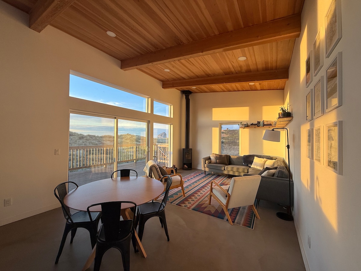 Будинок River Bend House розташований на березі, де річка Ячатс вигинається і впадає в Тихий океан. Вітальня облицьована вікнами, які забезпечують достатнє природне освітлення та дивовижний вид на воду. Розслабтеся на дивані та спостерігайте, як мешкають білоголові орлани, які полюють на рибу на пляжі, не виходячи з дому. River Bend House - це чарівний відпочинок для тих, хто приїжджає пограти, дослідити або просто відновити сили в красі узбережжя Орегону.
