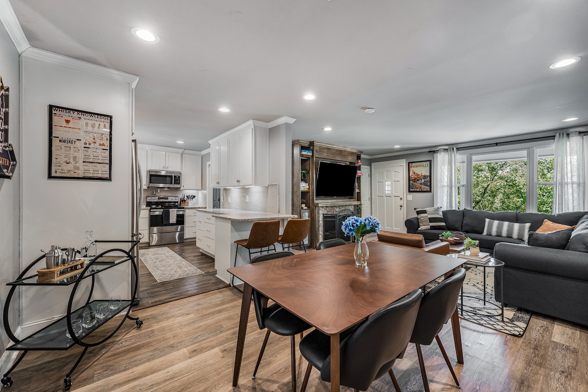 Затишний, оновлений будинок площею 1800 кв. футів, 5 миль до центру міста та ближче до інших крутих місць Нешвілла. Розташоване на усамітненій ділянці площею 1 акр із дорослими деревами, але поруч із усім найважливішим у Нешвіллі. Головний люкс XL із ліжком розміру King Size та сучасною ванною, душем із регулюванням температури та Bluetooth-колонкою, шезлонгом CMA та цифровим каміном. У другій спальні є ліжко розміру Queen Size, а поруч із нею розташована повноцінна ванна кімната. Кухня відкритого плану з гранітом, чудова вітальня з телевізором, швидкісний Wi-Fi, дві тераси. Справжній маленький рай!