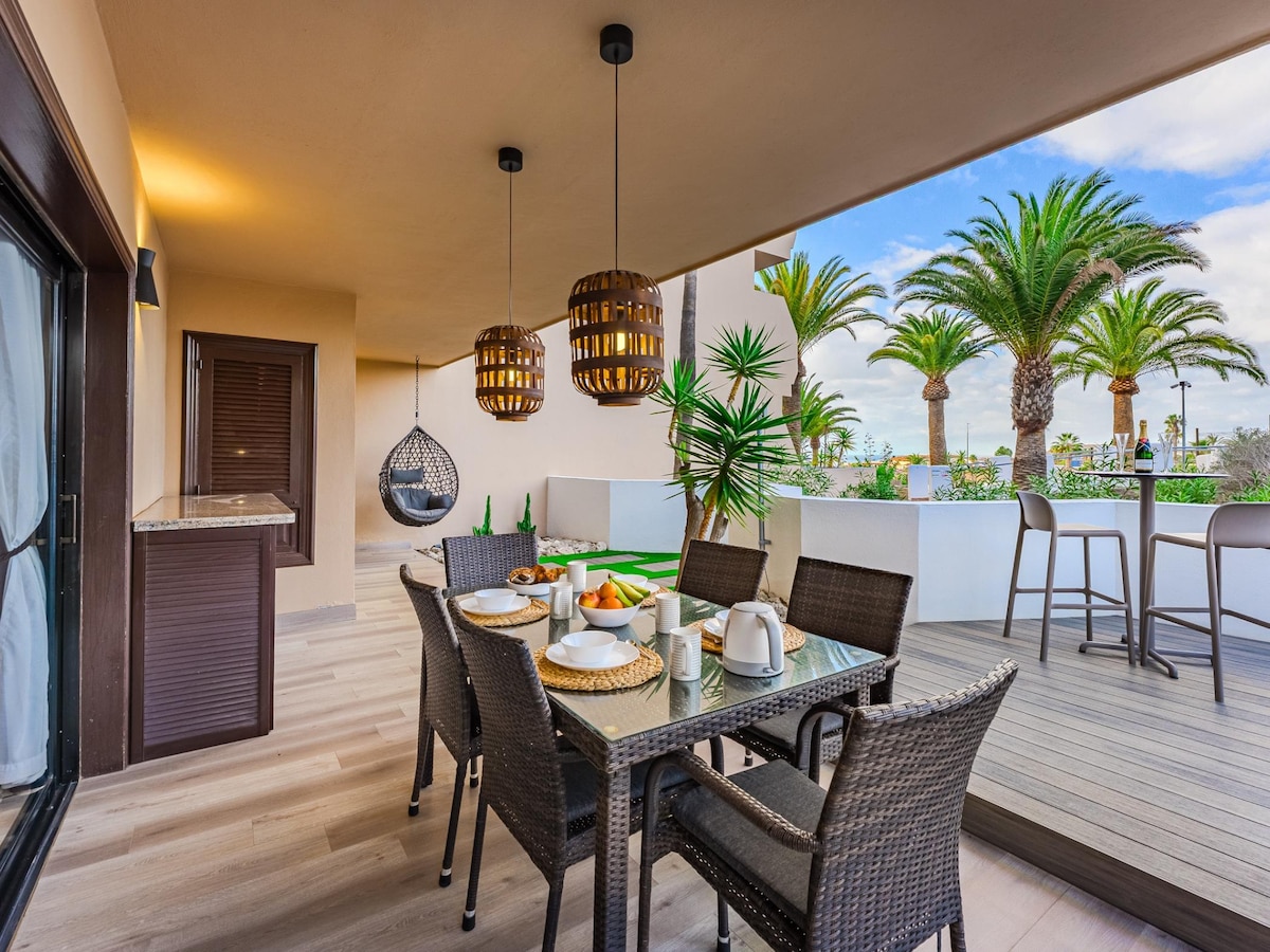 Discover our elegant design apartment (71m² terrace incl.) in Golf del Sur, Tenerife. Ideal for couples seeking comfort & quality. Enjoy a large terrace with Teide & sunrise views, Weber BBQ & Lafuma relax loungers. Premium kitchen, Smart TV (intl./German channels), fiber WiFi. Access to several heated pools. Self check-in & personalized support from our team with +10 years of experience. Book your dream holiday!