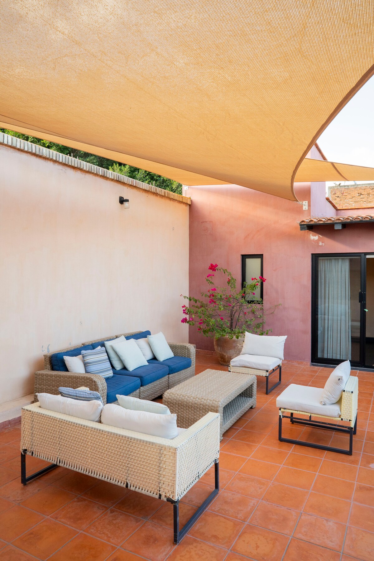 Цей чудовий будинок розділений на дві зони: в головному будинку є 3 кімнати, а у другій будівлі - 2 додаткові кімнати. У цьому другому будинку може бути ще одне помешкання для гостей, яким потрібна спальня на вулиці. З відкритою цегляною, дерев 'яною підлогою та складним дизайном, помешкання площею 16145 кв. футів розташоване в одному з найкрасивіших і спокійних районів Оахаки. Чудовий сад, коли ви входите, вам сподобається перебування тут! Одне з 5 найкращих місць для розміщення в Оахаці за рейтингом TimeOut.