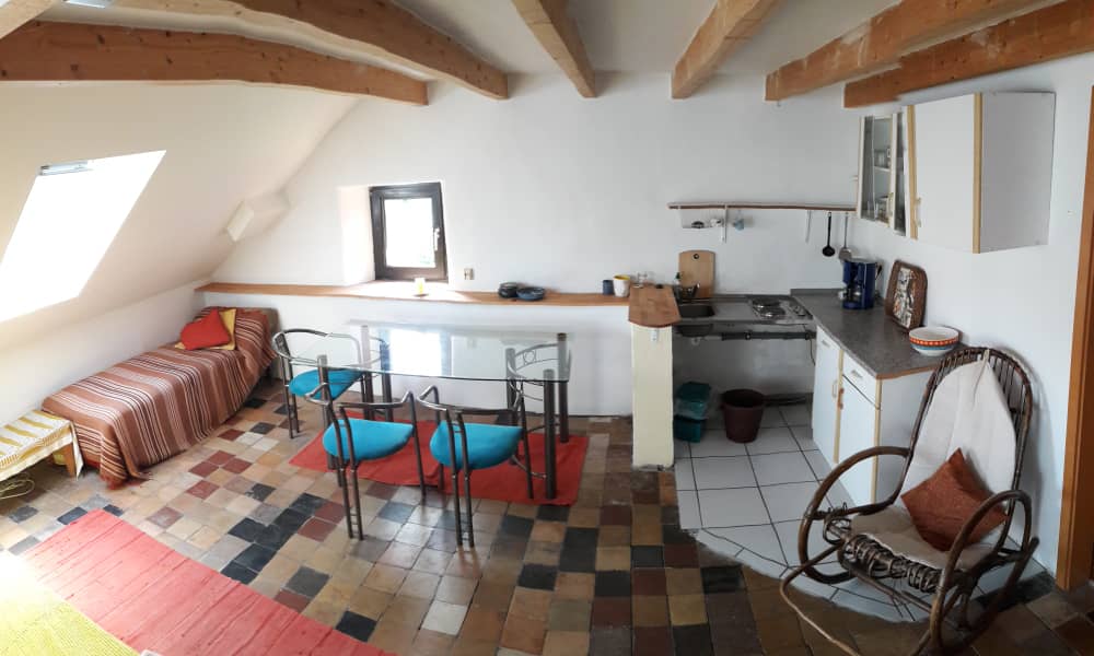 Квартира з однією кімнатою на 2-му поверсі з кухонними приміщеннями та ванною кімнатою для 1 - 3 осіб або 1 - 2 дорослих і 1 - 4 дітей ( 35 кв. м ) Два ліжка на гострому поверсі - два у великій кімнаті. Ще одну кімнату з ліжком 140x200 на 1-му поверсі можна забронювати за 20 євро на день Можливі намети Сад, з каміном, 1500 кв.м. Розмовні мови: німецька / англійська / французька
