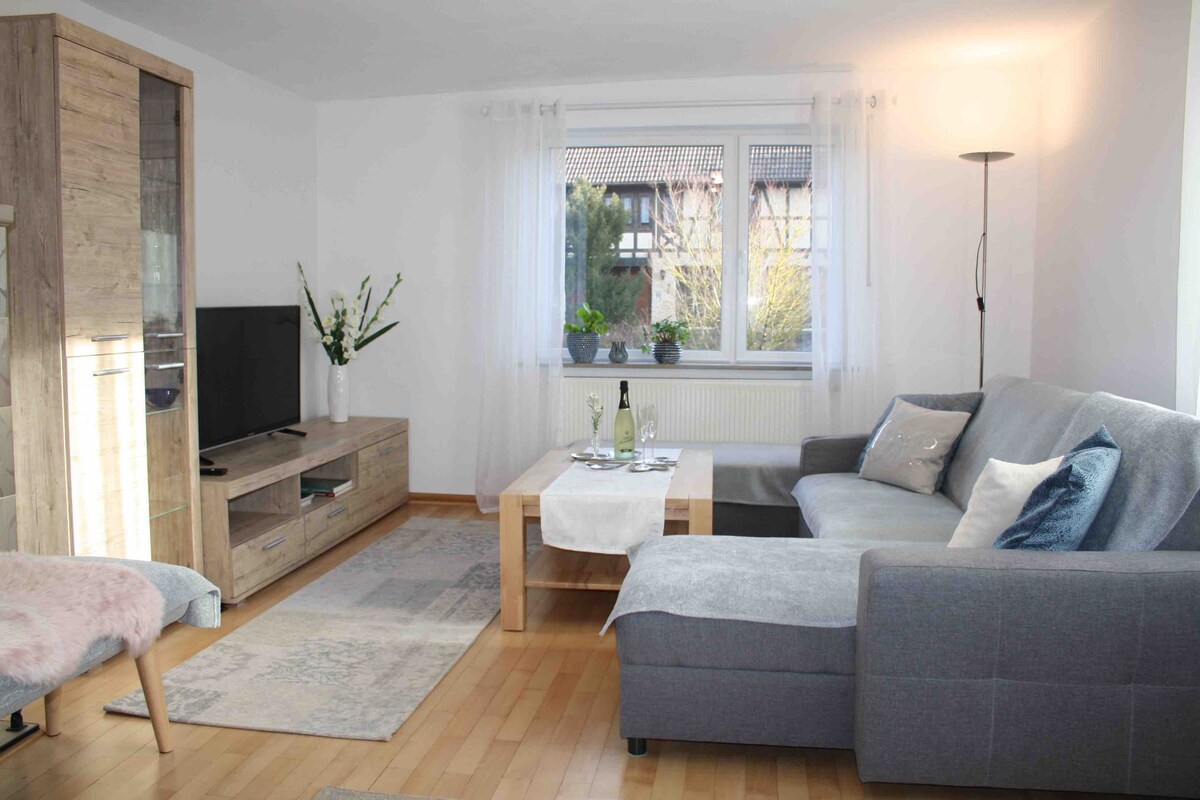 Сучасна, світла квартира у Ферингені на тихій околиці – ідеально підходить для 5 осіб. Простора квартира має повністю обладнану кухню, затишну вітальню та їдальню, дві спальні та ванну кімнату з душем. Великі вікна забезпечують достатньо денного світла. Балкон, гаражне паркування та швидкий Wi-Fi включено. Ідеальний доступ до автомагістралі A81 – ідеально підходить для відпочинку, роботи та відпочинку.