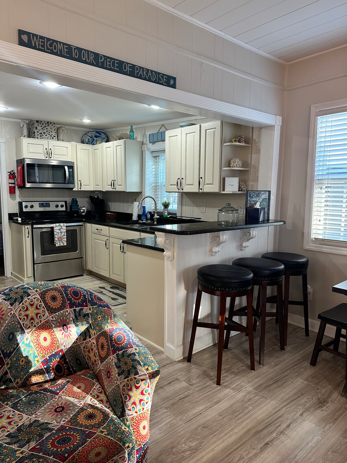 Enjoy a stylish experience at this Beach Cottage located in the (L) section of Ocean Lakes Family Campground in Myrtle Beach. Sea Shed Cottage is a short walk from the beach (250 yards) to be exact. The Sandy Mart, Water Park, Arcade and Mini Golf is just a short walk/ bike ride away in the campground with 24 HR security! ⭐️ 1 Golf cart and Linens are included during your stay! Additional cart for rent.