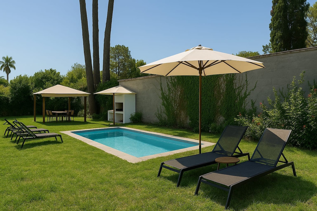 2 спальні, 2 ванні кімнати (одна зовні). Відкриті види на схід і захід сонця. Повністю обладнані. Постільна білизна та рушники. Прикрашено теплом. 4 км від Міжнародного аеропорту та 15 хвилин від Пунта-дель-Есте. Оптоволоконний Wi-Fi – DirecTV – Сигналізація ADT – Сейф – Спліт-система – Стельовий вентилятор – КРИТИЙ гриль – Столи на відкритому повітрі – Сад площею 1000 кв. м Пляж із Guardavida (літо) Послуги з прибирання надаються 3 рази на тиждень (без урахування свят/неділі). Споживання електроенергії не включено. ПЕРЕВІРИТИ вартість тривалого перебування