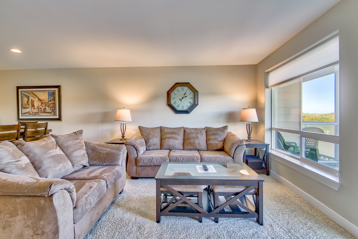 Приходьте і насолоджуйтеся нашим спокійним шматочком відпочинку в центрі Оушен-Шорс, штат Вашингтон. Насолоджуйтеся звуком океанських хвиль на приватній терасі з сезонним (зимовим) видом на океан. Ця одна спальня (ліжко queen-size), одна ванна кімната з туалетом і розкладна кімната можуть комфортно розмістити 4 осіб. Повністю добре обладнана кухня, їдальня та вітальня зі зручними сидіннями та великим смарт-телевізором і кабелем. Неподалік знаходиться лише коротка прогулянка до пляжу або проїзду на автомобілі! Ми будемо раді вас бачити!