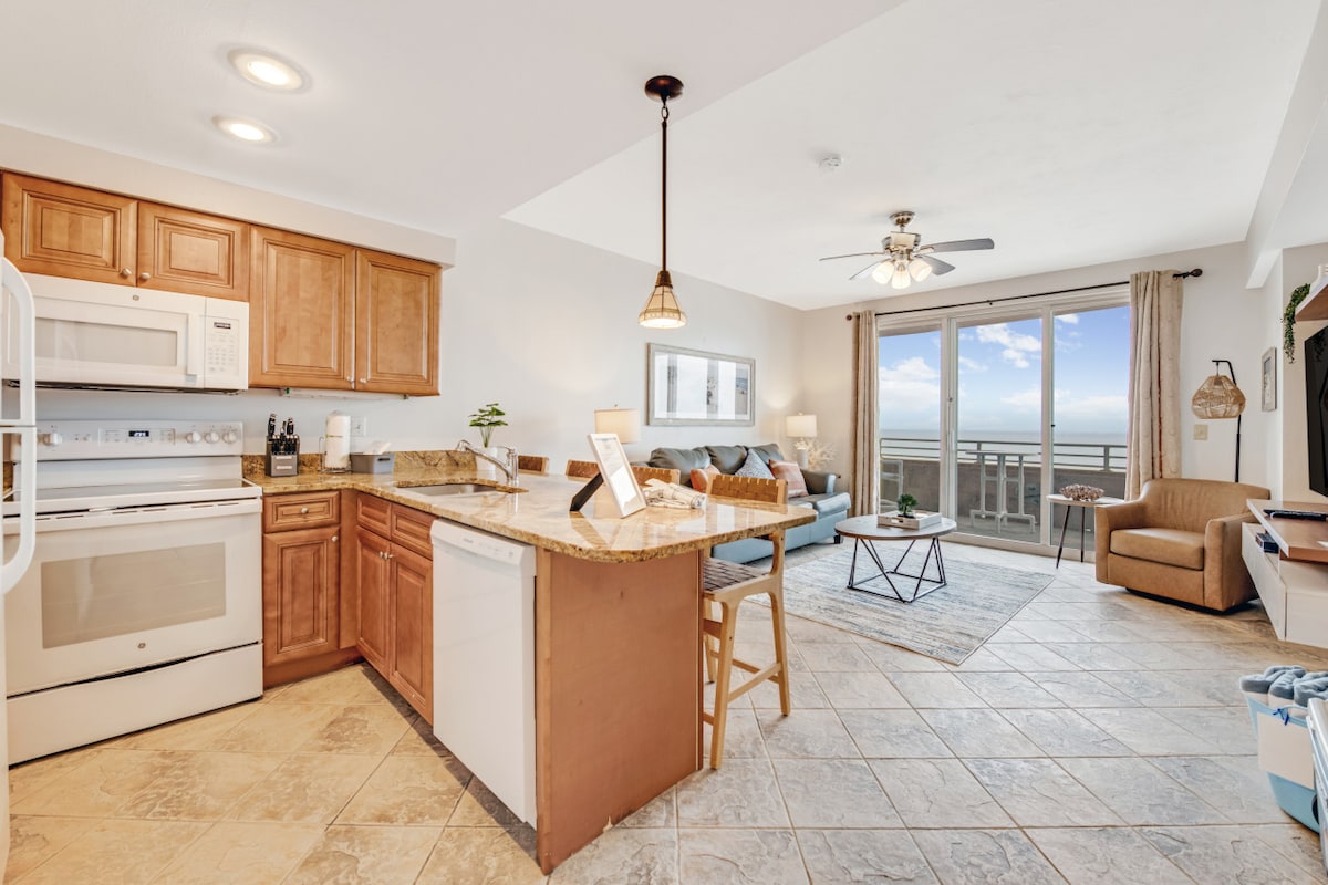 Немає нічого більш терапевтичного, ніж прокинутися під прекрасним сходом сонця. Приходьте і насолоджуйтеся нещодавно відремонтованим щасливим місцем, яке відчуває себе як удома. Цей повністю обладнаний кондомініум з однією спальнею знаходиться на 14-му поверсі з видом на чудові зручності: декілька басейнів, лінива річка довжиною 300 футів, водна гірка, джакузі та дитячий аквапарк. Крім того, вона розташована поруч із ракушками Daytona Beach Bands, Ocean Walk Shoppes та кінотеатром з живими концертами та феєрверками в літні місяці.