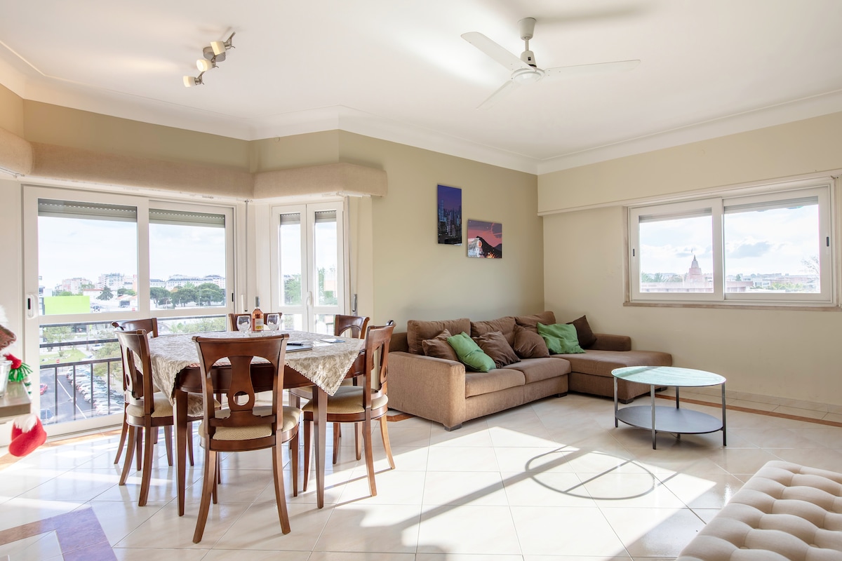 Ця квартира ідеально підійде для сімей або груп, і порадує вас під час вашого перебування в Лісабоні. З великої та добре освітленої квартири відкривається вид на сади Військового коледжу, Монсанто та Естадіо да Луз. Ви зможете прогулятися в історичній місцевості Карніде та побачити терасу в Ларго-ду-Корету, де є типові ресторани. Крім того, ви можете відвідати Theaterof Luz або його бар. Біля дверей розташовані автобуси та метро (10 футів), які привезуть вас до Россіо (20 футів), Експо (25 футів) або Сінтри (55 футів).
