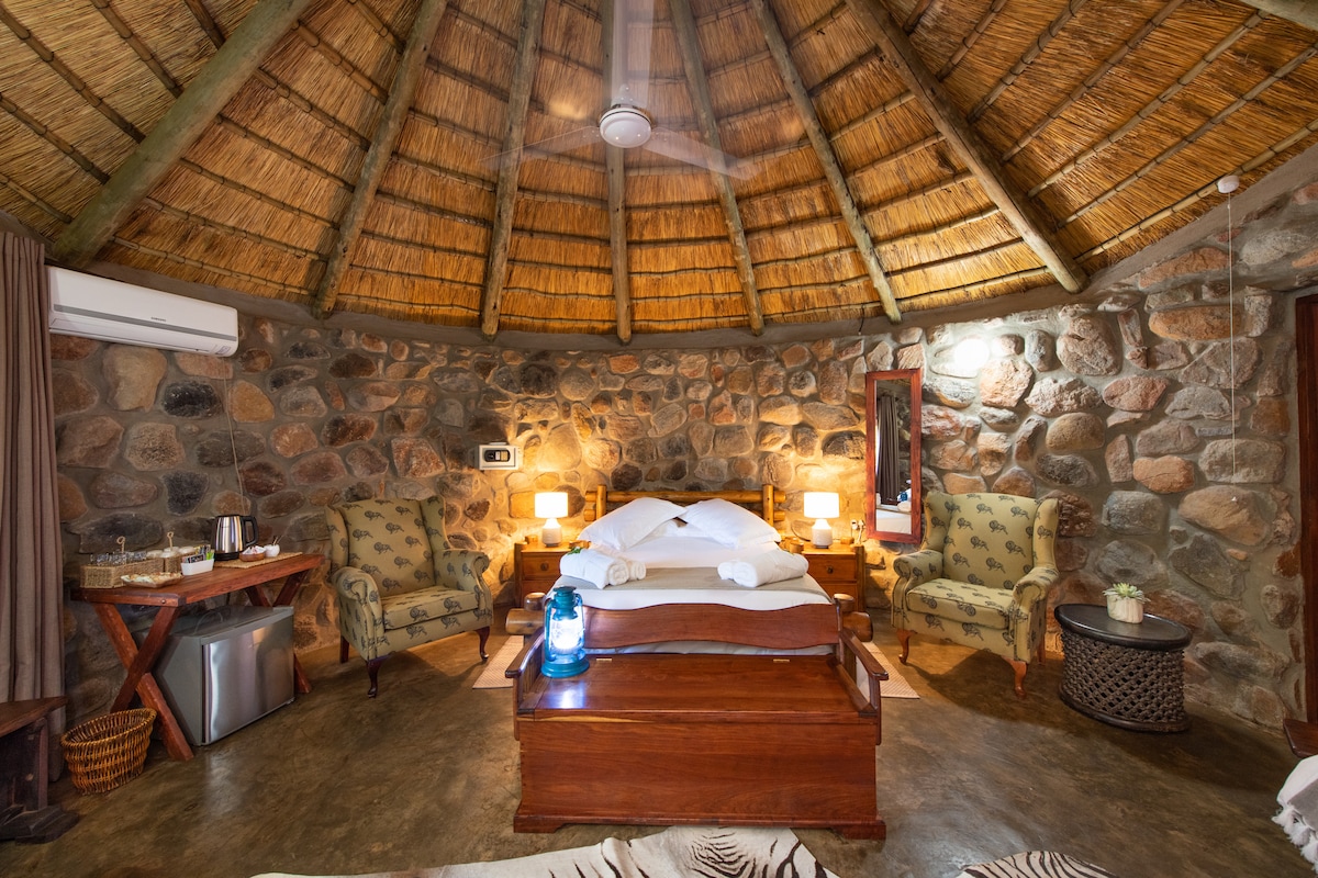 Окремий заміський будинок з двома кімнатами з кондиціонером площею 10кв. м, розташований в межах місцевої ділянки лісу біля підніжжя та на схід від найвищої вершини в каньйоні річки Блайд. З зеленої веранди заміського будинку, що простягнулася на всю довжину заміського будинку, гості можуть насолоджуватися чудовим видом на південноафриканський Лоувелд, а вдалині - Національний парк Крюгера, що торкається горизонту. Воно розташоване на самій вершині селища Камперсрус в безпечному й надійному помешканні.