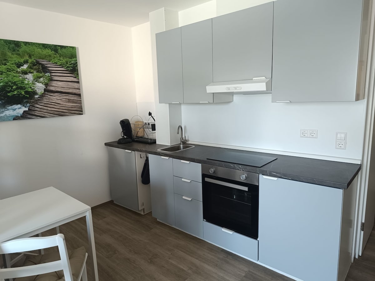 Helles 1-Zimmer-Appartement, Küche, Bad, Terrasse