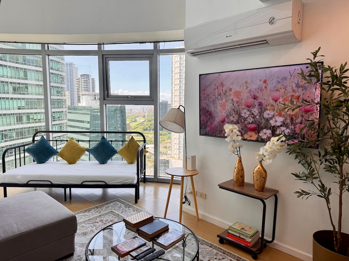 You will most likely find this to be your favorite listing in Makati, because it's ours. The view out of your corner windows is special, day and night - and we have put some extra design effort in it. You will find a bright, colorful and cozy corner studio apartment with all the comforts, in a strategic position to reach all the most attractive places of the city easily and quickly. Ask any questions you have or just book now, it won't last