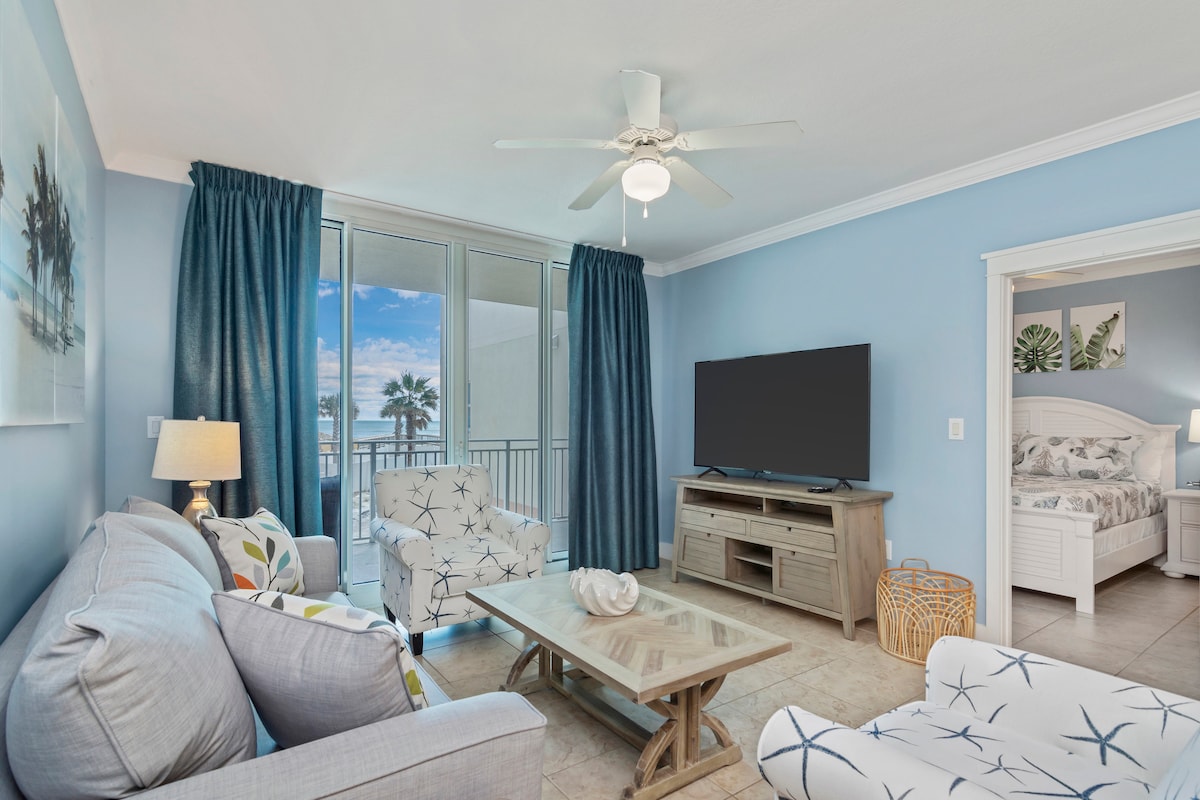 Нехай ваші турботи буквально зануриться в цьому розслаблюючому, зручному для дітей, красиво оформленому кондомініумі з ліжком King size з ванною + двоспальною/двоповерховою зоною з ванною - спальним диваном Queen LR. Насолоджуйтеся приголомшливим видом на Мексиканську затоку та зоною басейну з власного балкону. Запрошуємо вас насолодитися особливою відпусткою в цьому ідеальному раю на Смарагдовому узбережжі. Безкоштовний пляжний сервіс (2 стільці та парасолька) ВКЛЮЧЕНО! (1 березня - 31 жовтня). *Примітка. До цього бронювання буде застосовано туристичний збір округу Окалуса в розмірі 6%.