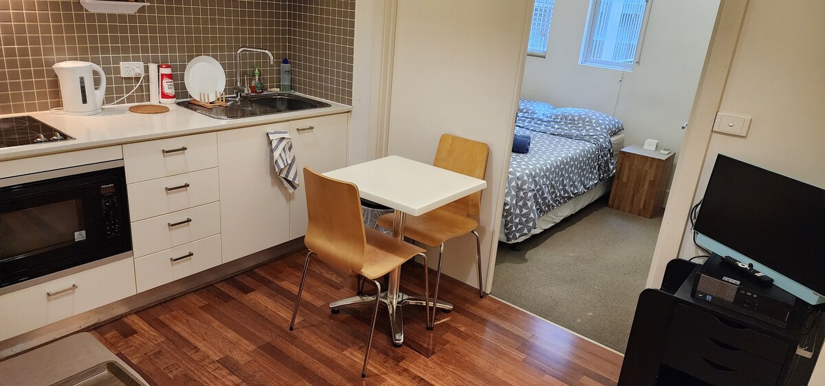 This bright and cheery first floor studio apartment, located in the iconic Exhibition Mews Building, offers everything needed for a short or long stay on the doorstep of Melbourne's CBD. The open plan layout provides a couple's luxury queen bed, a tucked-away fully equipped kitchenette and spacious change area with fully tiled bathroom and walk-in shower. A short walk takes you to Melbourne's diverse and multi-cultural locations - Lygon Street or trendy Gertrude or Brunswick streets
