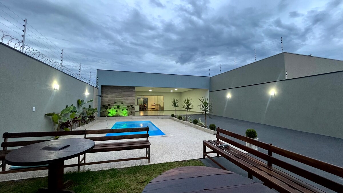 Recanto Moura – це не просто будинок, це запрошення пережити особливі моменти.✨ Тут ви знайдете комфорт, відпочинок і практичність: люкси з кондиціонером, повна зона для гурманів, щоб возз’єднати сім’ю, басейн з підігрівом для відпочинку та простір, продуманий з любов’ю, щоб привітати вас і тих, кого ви любите. Наше помешкання Recanto готове стати місцем ваших найкращих спогадів, незалежно від того, чи ви відпочиваєте, чи святкуєте.🧡