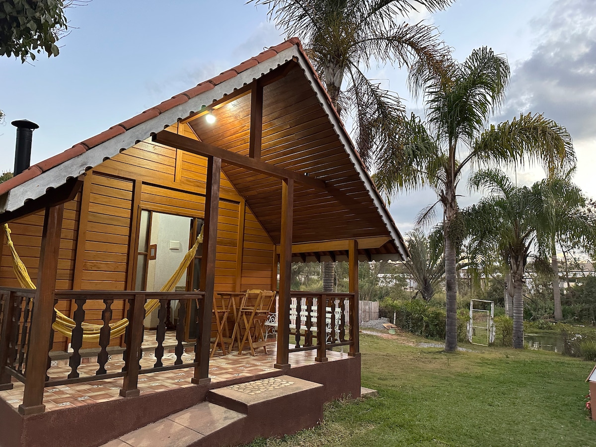 Chalé em meio a natureza, a 9km de Itapecerica-MG, localizado no distrito de Lamounier. Excelente para famílias ou casais, conta com cama de casal, solteiro e sofá-cama. Cozinha completa, banheiro, banheira de hidromassagem para 2 pessoas e sauna.