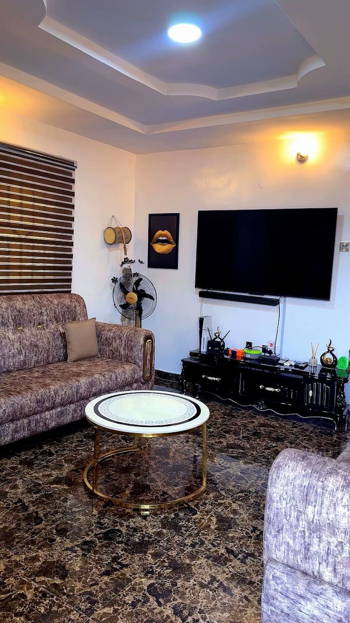 Наше помешкання з 2 спальнями ідеально підходить для пар, друзів, сімей, туристів і віддалених працівників. Розташоване в тихому, безпечному помешканні в Aare Bodija, всього в 2–5 хвилинах від ключових місць в Ібадані. 🎥 Приватний кінотеатр Обідня зона 🌅 на відкритому повітрі Електропостачання 🔌 24/7 🛡️ Цілодобова охорона в закритому житловому комплексі 🚀 Wi-Fi Starlink зі швидкістю 180 Мбіт/с ❄️ Кондиціонер у всіх кімнатах і житлових приміщеннях 🛏️ Плюшева постіль Консоль 🎮 PS5 📺 Смарт-телевізор у вітальні 🍳 Повністю обладнана кухня 🧼 Пральна машина, праска й прасувальна дошка 🚗 Безкоштовне паркувальне місце