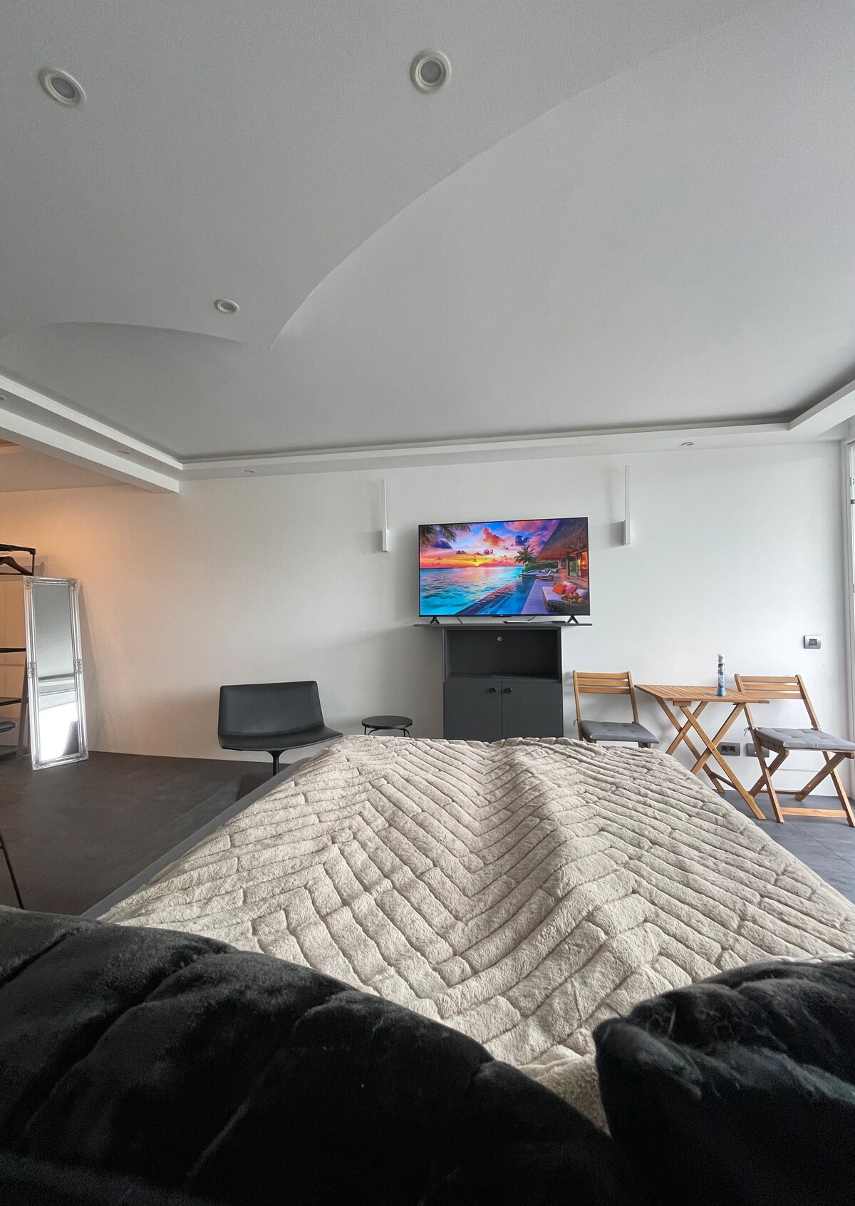 Велика вітальня/спальня з власною кухнею та ванною кімнатою