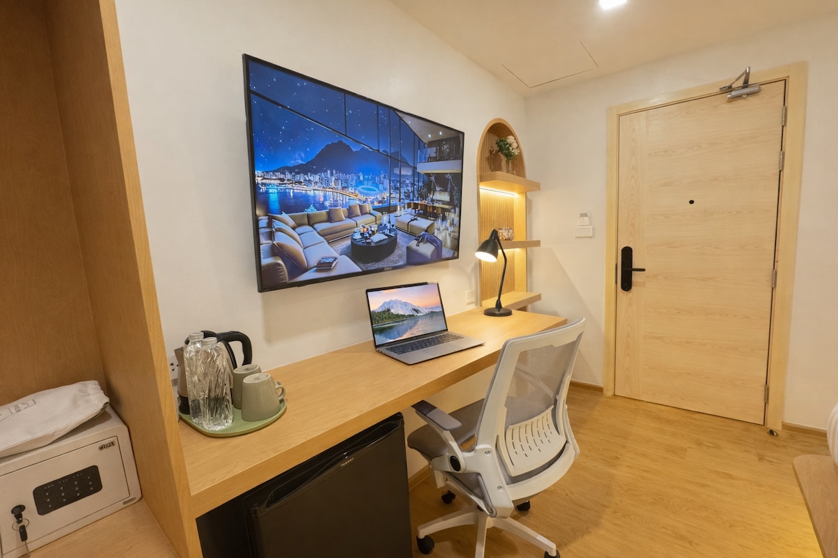 ✨ Brand new luxury unit in a newly opened hotel near Ekkamai BTS. 🏨 Professionally managed with 🧼 hotel-standard cleaning. Enjoy a comfy king bed, bright modern space (~30 sqm), and 🚀 fast WiFi (300 Mbps) ideal for work. Includes workspace, balcony. Walk to BTS, cafes & restaurants—perfect for business or leisure stays. ✨ Quiet, secure building with elevator access, fresh linens & towels, ideal for long stays, remote work, and a comfortable home-like experience.
