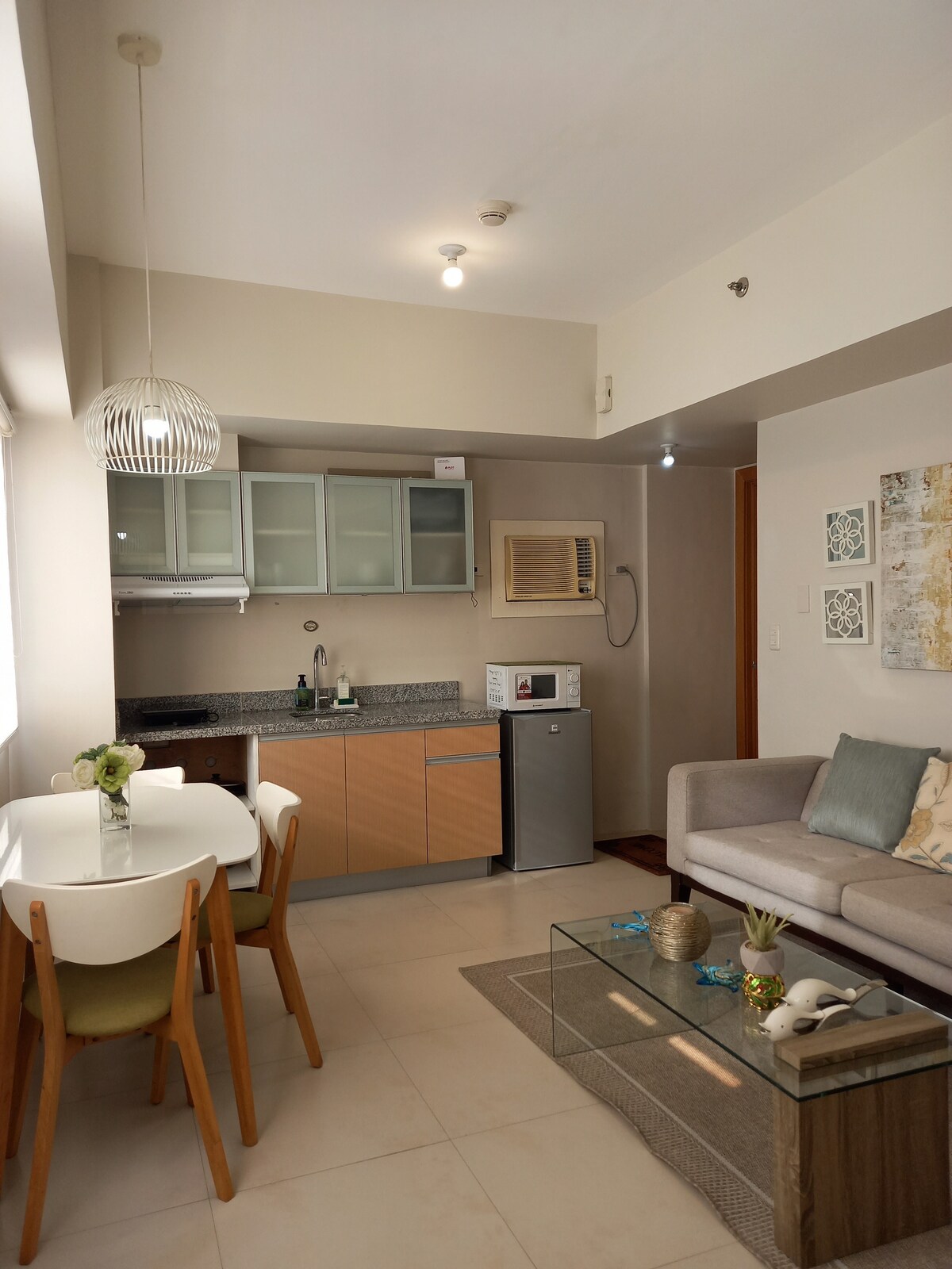 Наша оселя - це повністю мебльована квартира з 1 спальнею, розташована в Sundance Residences прямо в центрі міста Себу. Це тепле та затишне помешкання вітає і робить перебування гостей незабутнім і комфортним. Наша оселя обладнана базовими зручностями для приємного перебування, як-от водонагрівач для душу, холодильник, індукційна плита та чайник, приладдя для їжі та приготування їжі, рисоварка, мікрохвильова піч, диспенсер для води з безкоштовним поповненням 1 галону. Ми також надаємо unli Wi-Fi з 85 каналами Cignal TV.