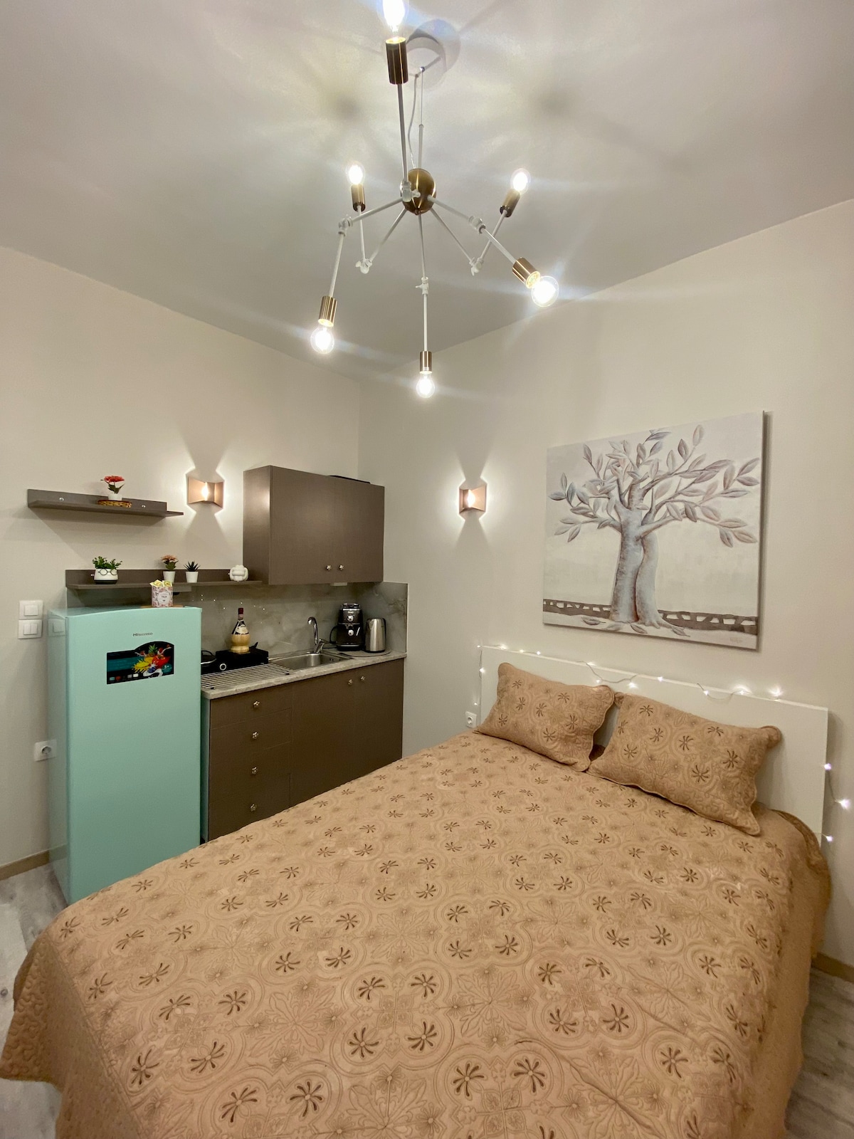 Красива маленька студія з усіма зручностями, в центрі міста, але в той же час в тихому куточку. У радіусі менше 500 метрів розташовані: залізничний вокзал, міжміські автобуси, майбутнє метро міста та корти. Поруч із традиційним особняком «Вілла Петридес», «Китайським ринком» та мальовничими провулками «Ладіки». В декількох метрах нижче відомої набережної Салонік починається. На просторій терасі можна насолодитися напоєм із відкритим видом.
