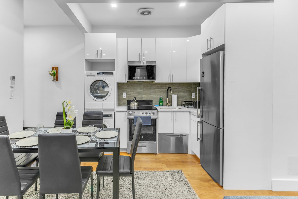 Ці чарівні та ретельно відреставровані цегляні апартаменти 1901 року чудово розташовані на вулиці в центрі Хобокена, обсадженій деревами. З власним входом без ключа, просторою планирою з дизайнерськими штрихами, повністю обладнаною кухнею, приватним патіо та сучасними зручностями, такими як Wi-Fi, Alexa та Smart TV. Якщо ви шукаєте короткий відпочинок і цінуєте висококласний стиль, це ідеальне місце для відпочинку та освіження. Для тривалого перебування заселяйтеся в оселі та відчуйте себе в новому будинку далеко від дому.