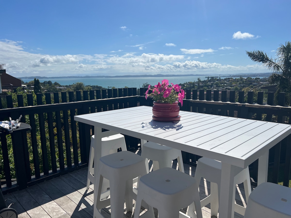 Ви будете насолоджуватися приголомшливим видом на море та острів, з цього бездоганного розкішного будинку з 2 ліжками, 2 ванними кімнатами. Декор помешкання - французький, має дві спальні, одна з яких має ліжко Queen Size, а інша - суперкінг, який можна розділити на два односпальні ліжка, кожна з яких має власну власну ванну кімнату Сонячна вітальня відкритого плану з кухнею та приватною сонячною внутрішньою зоною на відкритому повітрі з видом на гавань та море на острові. Ми не знаходимося на острові Вайхеке