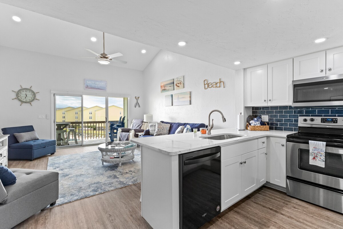 Насолоджуйтеся видом на океан у цій квартирі на третьому поверсі на прекрасному і тихому пляжі Норт-Топсейл-Біч. Побалуйте себе вражаючими сходами сонця та видом на дельфінів, які граються біля берега. У Hatchling є окремий балкон, 1 спальня, двоярусні ліжка та диван з повноцінним спальним місцем. Острів Топсейл – ідеальне місце для відпочинку та насолоди піском, мушлями та морем, а також для розваг поблизу. Ця «точкова одиниця» пропонує безперешкодний вид на океан, а також Wi-Fi 5G, телевізор/Roku та повністю обладнану кухню.