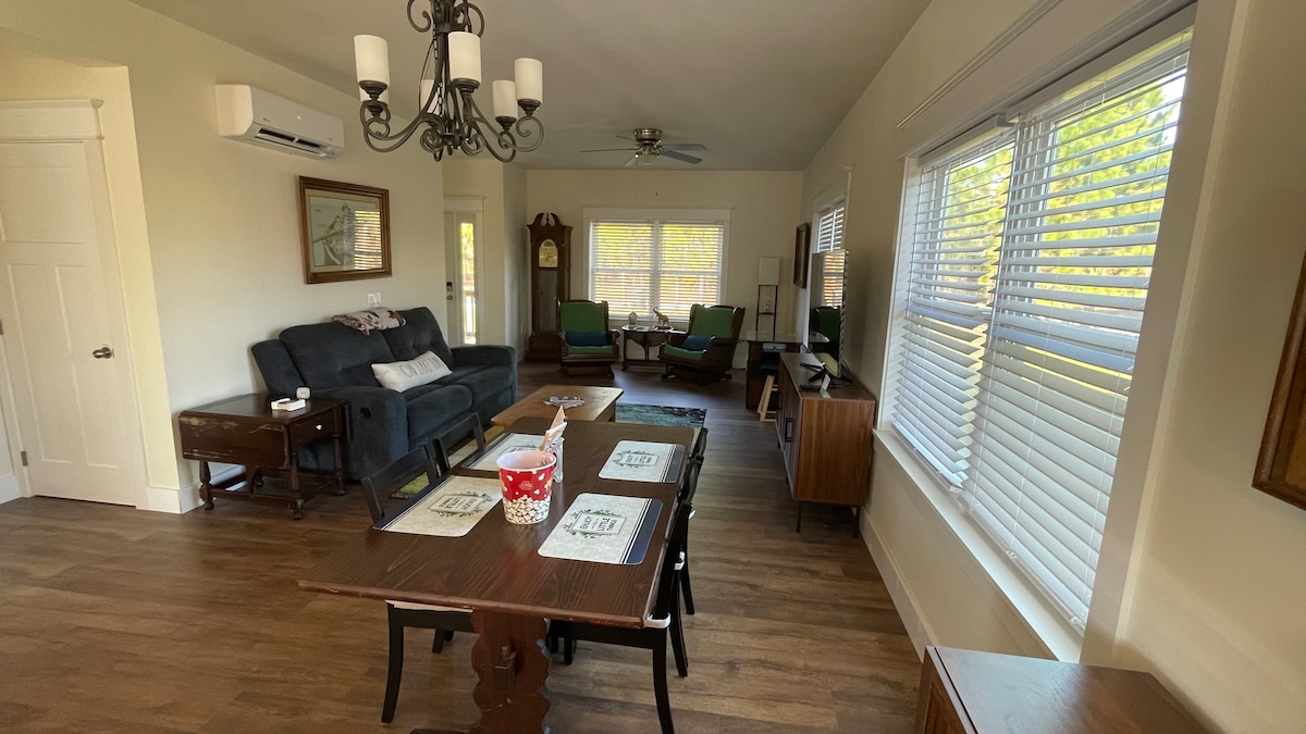 Приголомшливий приватний основний поверх площею 1800 квадратних футів у стилі сучасного індустріального фермерського будинку на Парквей біля Ріверфронт. Стелі з дерева, відкриті балки, відкритий простір, головна спальня, індивідуальне оздоблення. Великий внутрішній дворик, гриль, сидіння на відкритому повітрі, огороджений сезонний басейн/спа з місцем для багаття. 2 велосипеди для дорослих, дитячі самокати, кілька кроків від огородженого ігрового майданчика, тенісні/піклбол/баскетбольні корти, бейсбольне поле, спуск для човнів, пішохідні доріжки, прокат байдарок. Кемп-Лежун: 10 хв, Норт-Топсейл-Біч: 30 хв, Емер. Айл: 45 хв.