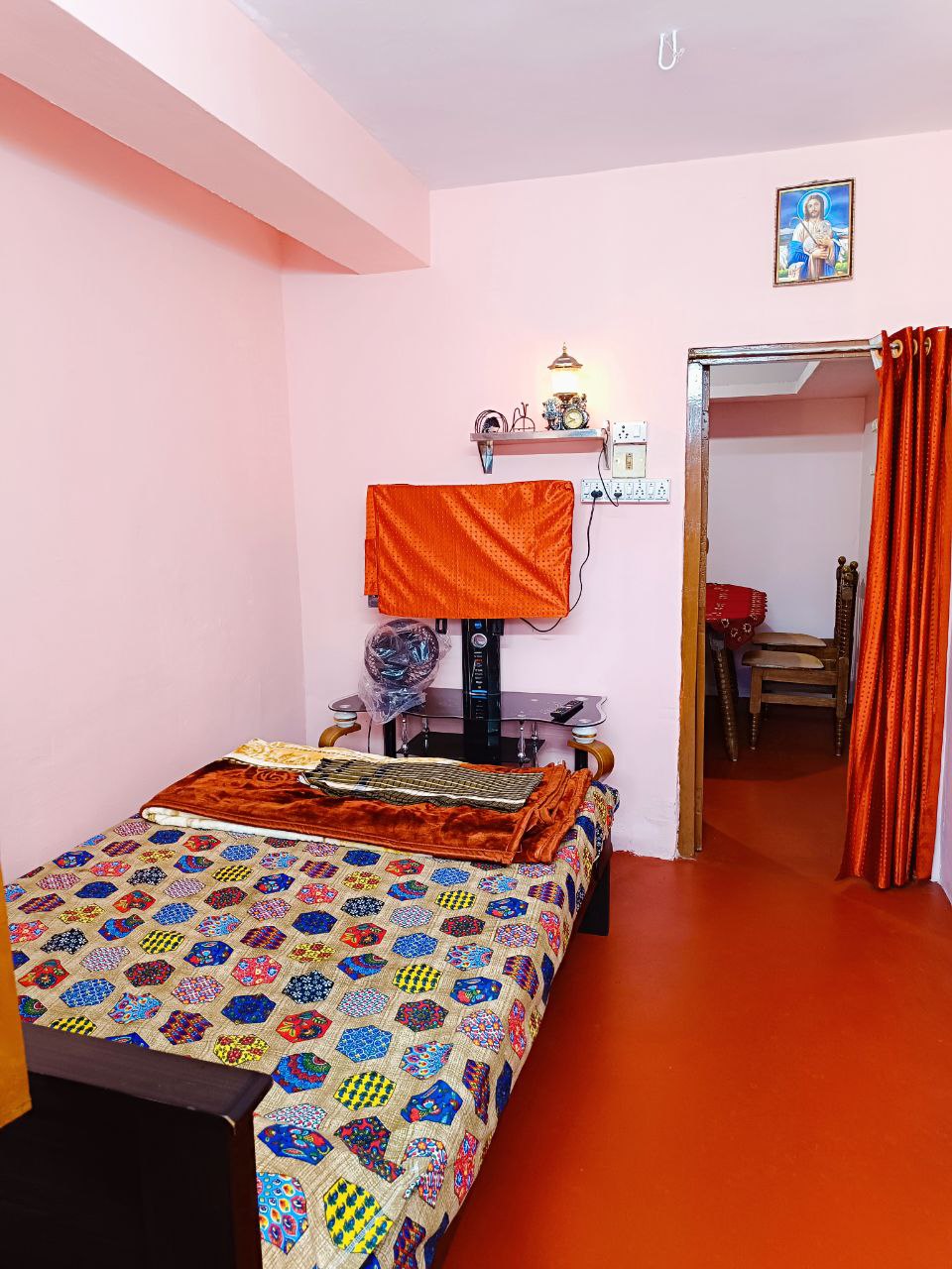 Our charming 1 BHK house at Samara Homestay offers a cozy retreat for a comfortable stay. The living area is tastefully furnished, providing a welcoming space to relax and unwind. The bedroom features a queen-size cot, ensuring a restful night's sleep. The interiors are thoughtfully designed, blending modern amenities with a homely ambiance, making it an ideal choice for both short and extended stays. Perfect for solo travelers, couples, or small families looking for a serene getaway.