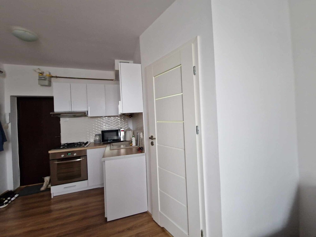 Спокій, усамітнення, близькість, настрій: окремий гостьовий будинок, цілий рік, з альтанкою, каміном на відкритому повітрі та грилем, відповідають таким очікуванням. У помешканні є міні-кухня з холодильником та електричною варильною поверхнею з двома конфорками, а також ванна кімната з душем. Усередині є біочервона та дров 'яна піч, крім центрального опалення. Повністю обладнане місце для відпочинку в атмосферному місці поблизу Казімєжа Долні (близько 3 км).