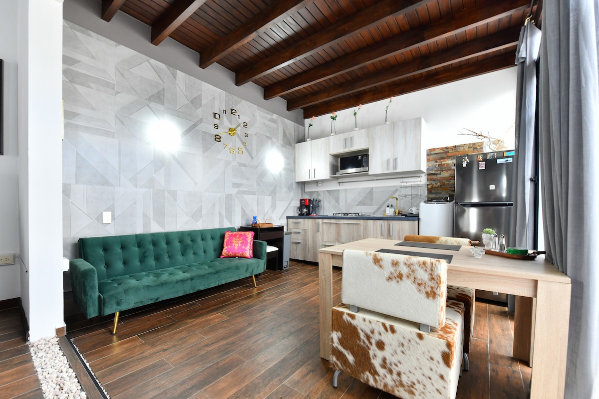 Welcome to our charming Guest Apartment! This comfortable Studio with haven boasts a comfortable Queen-sized bed, ideal for a peaceful night's rest, while a fold-out sofa provides a snug space for your little one. Our modern kitchen is a fully equipped with contemporary amenities including a microwave, coffee machine, and refrigerator. We've even included a small washer, ensuring your stay is as convenient as it is comfortable.