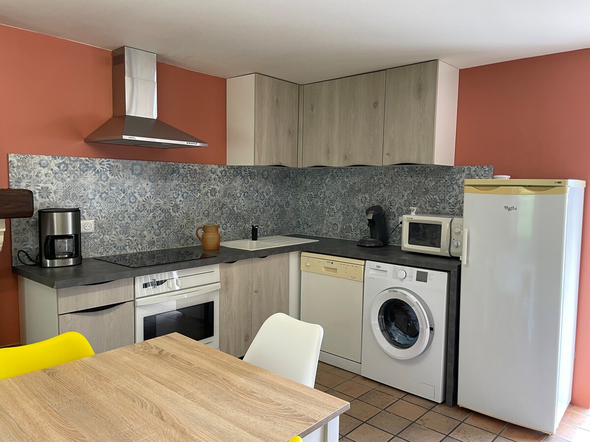 Будинок розташований у сільській місцевості. Це відремонтований будинок у старій сільськогосподарській будівлі з чарівністю. Серед полів і виноградників ви проведете тихе перебування, пташиний спів цілий день, жаби ввечері влітку. 5 хвилин від села з основними магазинами. Складається з 3 спальних кімнат, великої вітальні, обладнаної кухні, ванної кімнати та окремого туалету. Ванна кімната пристосована для людей з обмеженою мобільністю. Тераса, паркінг, поле для гри в бочче.