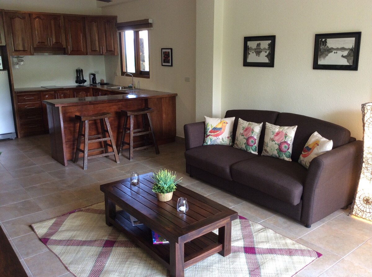 This modern self contained Villa is at 95 square meter and has a master bedroom with king bed and ensuite plus the 2nd bedroom with twin beds, ideal for 4 people but can accommodate 6 with use of sofa bed. It is located across the road from Sunset at Aninuan Beach Resort, guests have full use of the resort facilities including daily housekeeping. The resort is situated directly on the beautiful Aninuan beach with great snorkeling and diving and many other water sports available.