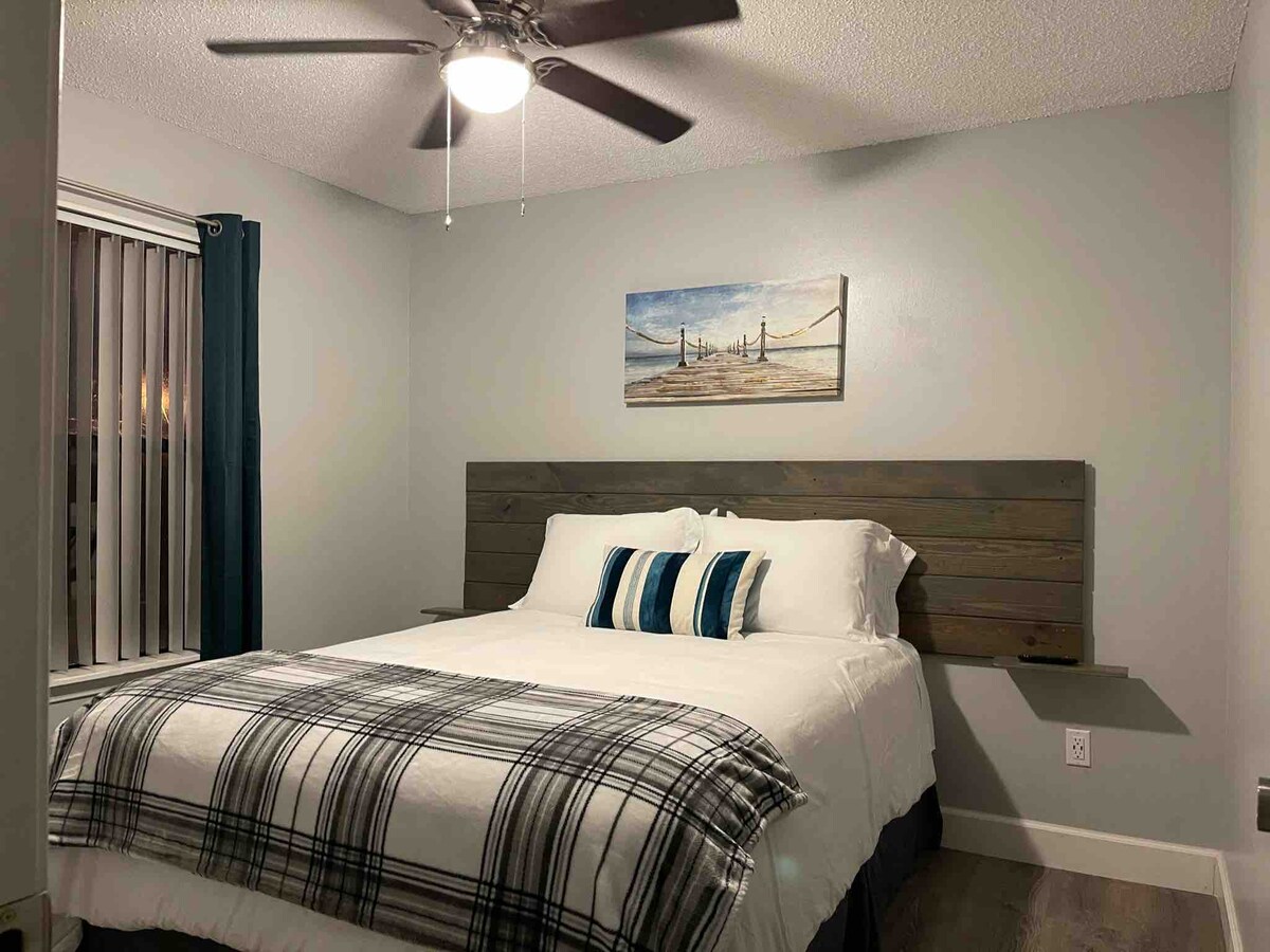Спокійний і стильний таунхаус із 2 спальнями/1,5 ванними кімнатами, ідеально підходить для сімей або пар. Комфортно можуть ночувати 4 особи на двох двоспальних ліжках розміру «king size». До ваших послуг сучасна, повністю обладнана кухня, тиха тераса та частковий вид на затоку. Розташоване всього за 5 миль від пляжу Пенсакола-Біч і неподалік від природних стежок і закладів харчування. Ваше ідеальне місце для відпочинку на узбережжі!