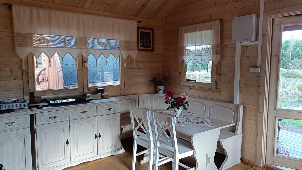 Пропонуємо цілий рік гостювати в дерев’яному будиночку, розташованому в ландшафтному парку Ельблонзької височини. Ми провели в ньому багато часу, насолоджуючись спокоєм і магією лісу. Ми створили його для комфортного перебування 2 осіб. У вашому розпорядженні спальня, вітальня з кухнею та крита тераса. Це рай для інтровертів або ідеальне місце для віддаленої роботи на лоні природи. Нехай це місце в лісі стане вашим приватним притулком, місцем, де час сповільнюється...